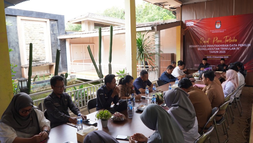 Mesuji, 17 Desember 2025. Ketua Divisi Perencanaan, Data, dan Informasi KPU Kabupaten Mesuji, Agus Sunanto, M.Pd., mengikuti Rapat Pleno Terbuka Penetapan Rekapitulasi Pemutakhiran Data Pemilih Berkelanjutan Tingkat Nasional Semester II Tahun 2025. Kegiatan tersebut dilaksanakan secara daring oleh KPU Republik Indonesia pada Rabu, 17 Desember 2025. Agus Sunanto mengikuti kegiatan ini didampingi oleh Kepala Subbagian dan staf Subbagian Perencanaan, Data, dan Informasi. Keikutsertaan ini merupakan bagian dari pelaksanaan tugas kelembagaan KPU daerah. Seluruh rangkaian kegiatan diikuti dengan penuh perhatian. Rapat pleno nasional ini menjadi agenda strategis dalam proses konsolidasi data pemilih secara berkelanjutan. KPU Republik Indonesia memimpin jalannya pleno yang diikuti oleh KPU provinsi dan kabupaten/kota se-Indonesia. Setiap satuan kerja menyampaikan dan mencermati hasil rekapitulasi PDPB dari wilayah masing-masing. Forum ini juga menjadi ruang klarifikasi terhadap dinamika data pemilih yang terus mengalami perubahan. Proses pleno berlangsung terbuka dan sistematis. Dalam kesempatan tersebut, Agus Sunanto menegaskan pentingnya akurasi data pemilih sebagai fondasi utama penyelenggaraan pemilu. “Data pemilih yang mutakhir dan valid merupakan prasyarat penting untuk mewujudkan pemilu yang berkualitas,” ujar Agus Sunanto. Ia menyampaikan bahwa PDPB harus dikelola secara konsisten dan profesional. Menurutnya, pemutakhiran berkelanjutan mencerminkan komitmen KPU dalam menjaga hak konstitusional warga negara. Pernyataan tersebut disampaikan saat mengikuti pleno secara daring. KPU Kabupaten Mesuji secara aktif melakukan pemutakhiran data pemilih melalui koordinasi dengan berbagai pemangku kepentingan. Proses ini melibatkan pencermatan data kependudukan dan laporan perubahan elemen pemilih. Setiap tahapan dilaksanakan sesuai dengan ketentuan peraturan perundang-undangan. Hasil pemutakhiran kemudian direkapitulasi dan dilaporkan secara berjenjang. Mekanisme ini bertujuan menjaga validitas data secara berkelanjutan. Rapat pleno terbuka juga menjadi sarana evaluasi nasional terhadap pelaksanaan PDPB. KPU RI menekankan pentingnya keseragaman pemahaman dan pelaksanaan di seluruh daerah. Setiap masukan dari daerah dicatat sebagai bahan penyempurnaan kebijakan teknis. Diskusi berlangsung dinamis dengan tetap mengedepankan prinsip transparansi. Seluruh peserta mengikuti agenda hingga selesai. Melalui keikutsertaan dalam rapat pleno nasional ini, KPU Kabupaten Mesuji memperkuat komitmen dalam menjaga kualitas data pemilih. Data pemilih yang akurat diharapkan mendukung tahapan pemilu berikutnya secara optimal. KPU Kabupaten Mesuji terus berupaya meningkatkan kinerja pengelolaan data dan informasi. Langkah ini sejalan dengan prinsip profesionalitas dan integritas penyelenggara pemilu. Upaya berkelanjutan tersebut menjadi bagian dari pelayanan demokrasi kepada masyarakat. (ali)