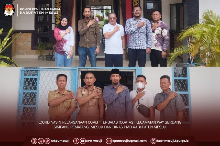 Mesuji, (01/09/2025) – Komisi Pemilihan Umum (KPU) Kabupaten Mesuji intensif melakukan koordinasi untuk memastikan tahapan Pemilu berjalan sesuai jadwal dan aturan. Ketua Divisi Perencanaan, Data dan Informasi KPU Kabupaten Mesuji, Agus Sunanto, M.Pd., memimpin langsung koordinasi pelaksanaan pencocokan dan penelitian (Coklit) data pemilih di Kecamatan Way Serdang dan Simpang Pematang pada Jumat, 29 Agustus 2025. Selanjutnya, koordinasi juga dilakukan di Kecamatan Mesuji dan Dinas Pemberdayaan Masyarakat dan Desa (PMD) Kabupaten Mesuji pada Senin 01 September 2025. Kegiatan ini menjadi bagian dari langkah strategis KPU Kabupaten Mesuji untuk mengawal validitas daftar pemilih di setiap tahapan.