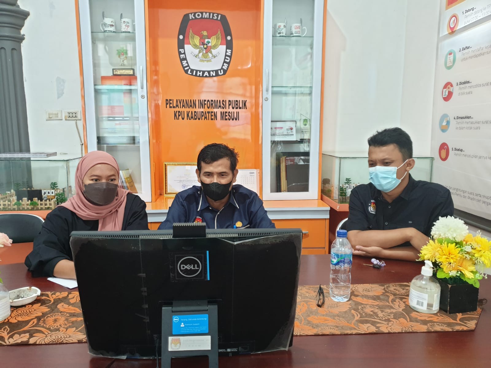 Kasubbag Keuangan, Umum dan Logistik Komisi Pemilihan Umum Kabupaten Mesuji, Sutarno beserta Kasubbag Program dan Data, Neli Ernawati dan Staf KPU Kabupaten Mesuji mengikuti Arahan Sekretaris KPU Provinsi Lampung secara daring dalam Rangka Menghadapi Pemeriksaan Kas & Akhir Tahun 2021, Rabu (29/12/2021).