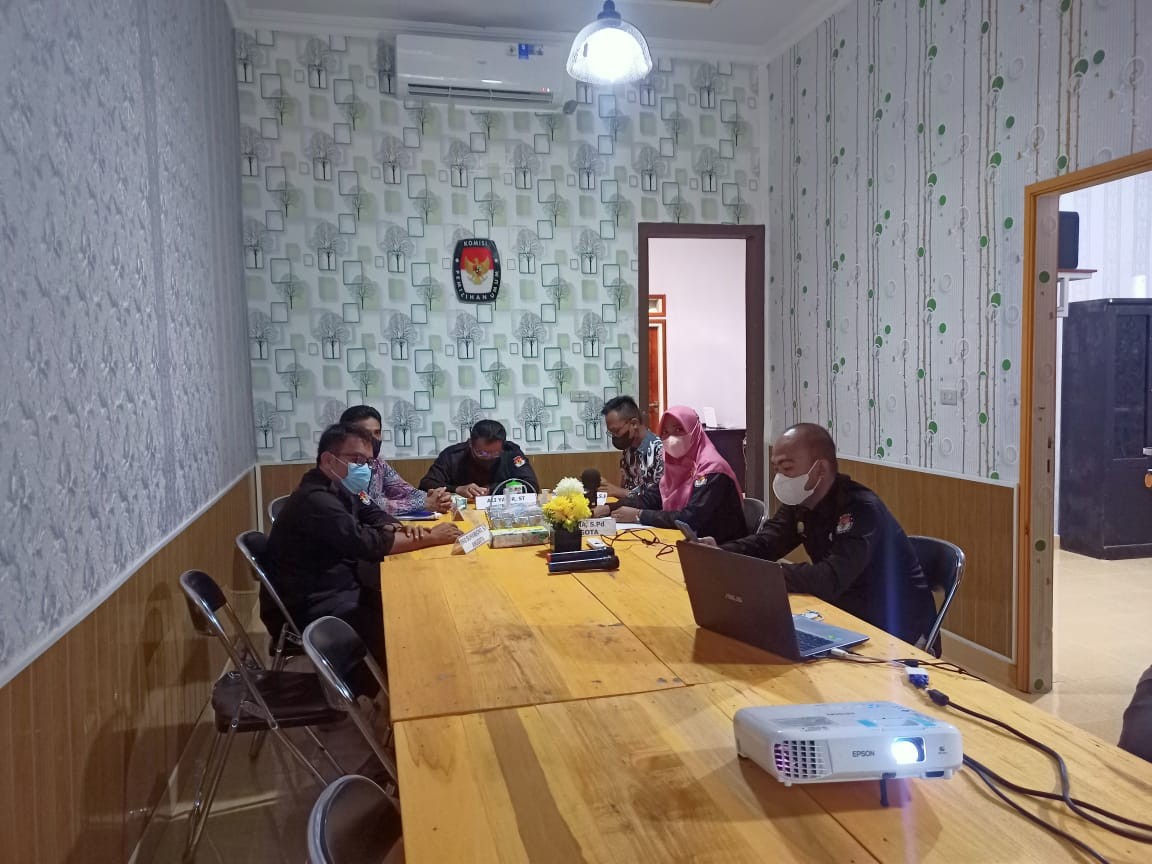 Komisi Pemilihan Umum (KPU) Kabupaten Mesuji mengikuti Rapat Rekapitulasi Pemutakhiran Data Pemilih Berkelanjutan (DPB) Tingkat Provinsi Tahun 2022 secara daring (Dalam Jaringan) di ruang rapat KPU Kabupaten Mesuji, Rabu (09/03/2022).