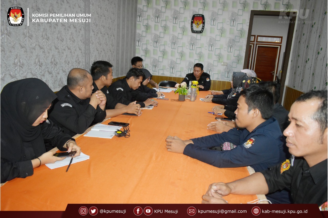 Evaluasi ini di pimpin oleh Sekretaris KPU Kabupaten Mesuji Iklas Setia, S.Pd dan didampingi oleh seluruh Kepala Sub Bagian (Kasubbag) Sekretariat KPU Kabupaten Mesuji.