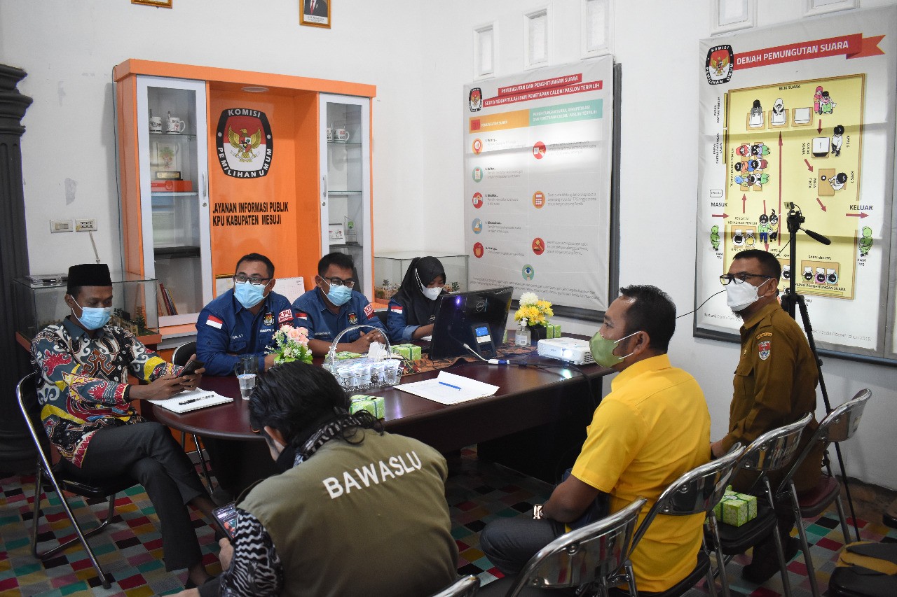 Komisi Pemilihan Umum Kabupaten Mesuji melaksanakan Rapat Rekapitulasi Daftar Pemilih Berkelanjutan (DPB) Periode Triwulan IV Tahun 2021, Senin (27/12/2021). Rapat ini dipimpin oleh Ketua KPU Kabupaten Mesuji dan diikuti oleh seluruh anggota KPU Kabupaten Mesuji, Dinas Kependudukan dan Pencatatan Sipil Kabupaten Mesuji, dan perwakilan partai politik.
