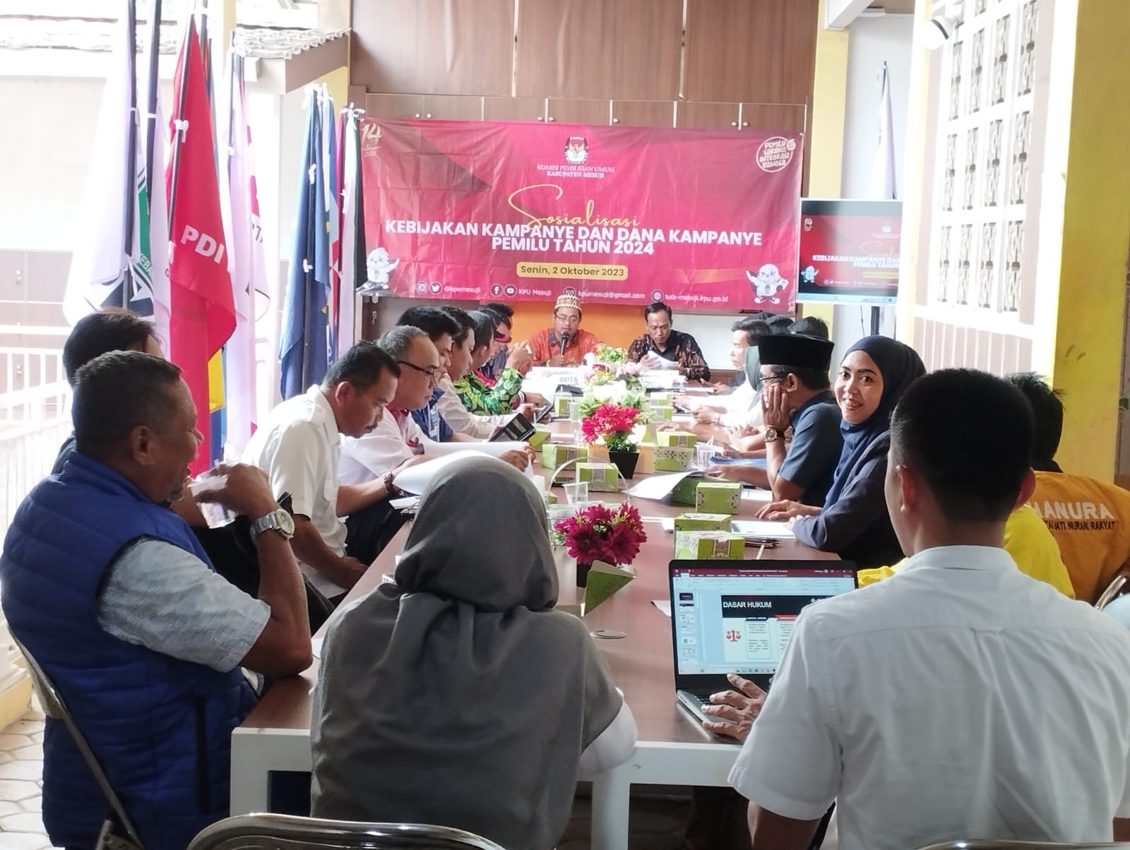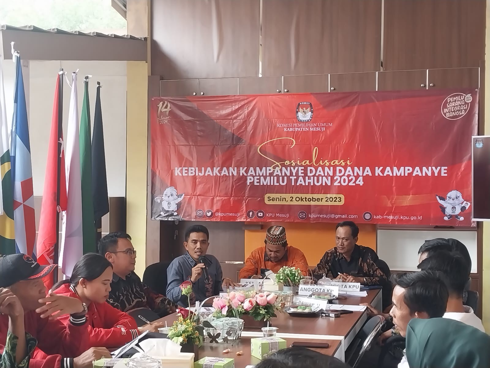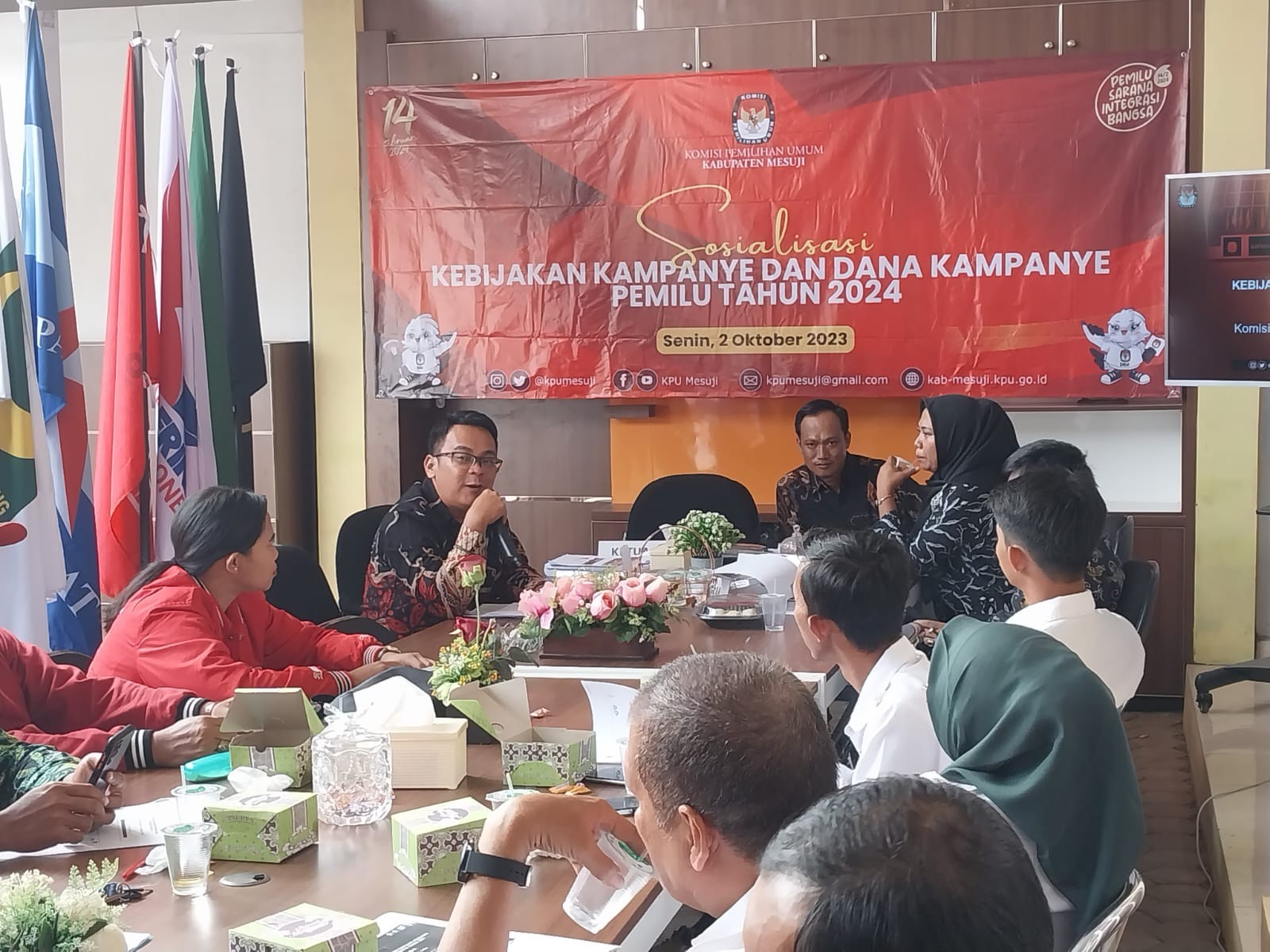 Komisi Pemilihan Umum (KPU) Kabupaten Mesuji melakukan Sosialisasi Kebijakan Kampanye dan Dana Kampanye untuk Pemilu serentak tahun 2024 di kantor KPU Kabupaten Mesuji, Senin (02/10/2023).
