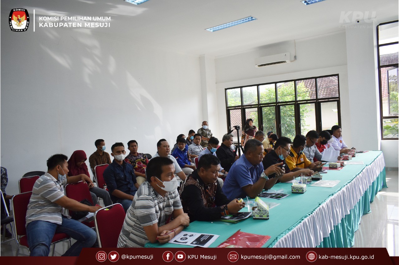 Hadir dalam kegiatan tersebut Seluruh Komisioner KPU Kabupaten Mesuji, Ketua Bawaslu Kabupaten Mesuji Apri Susanto, Kabid Politik Dalan Negeri Badan Kesbangpol Kabupaten Mesuji Nopen Hariyono, dan Pengurus Partai Politik tingkat Kabupaten Mesuji.