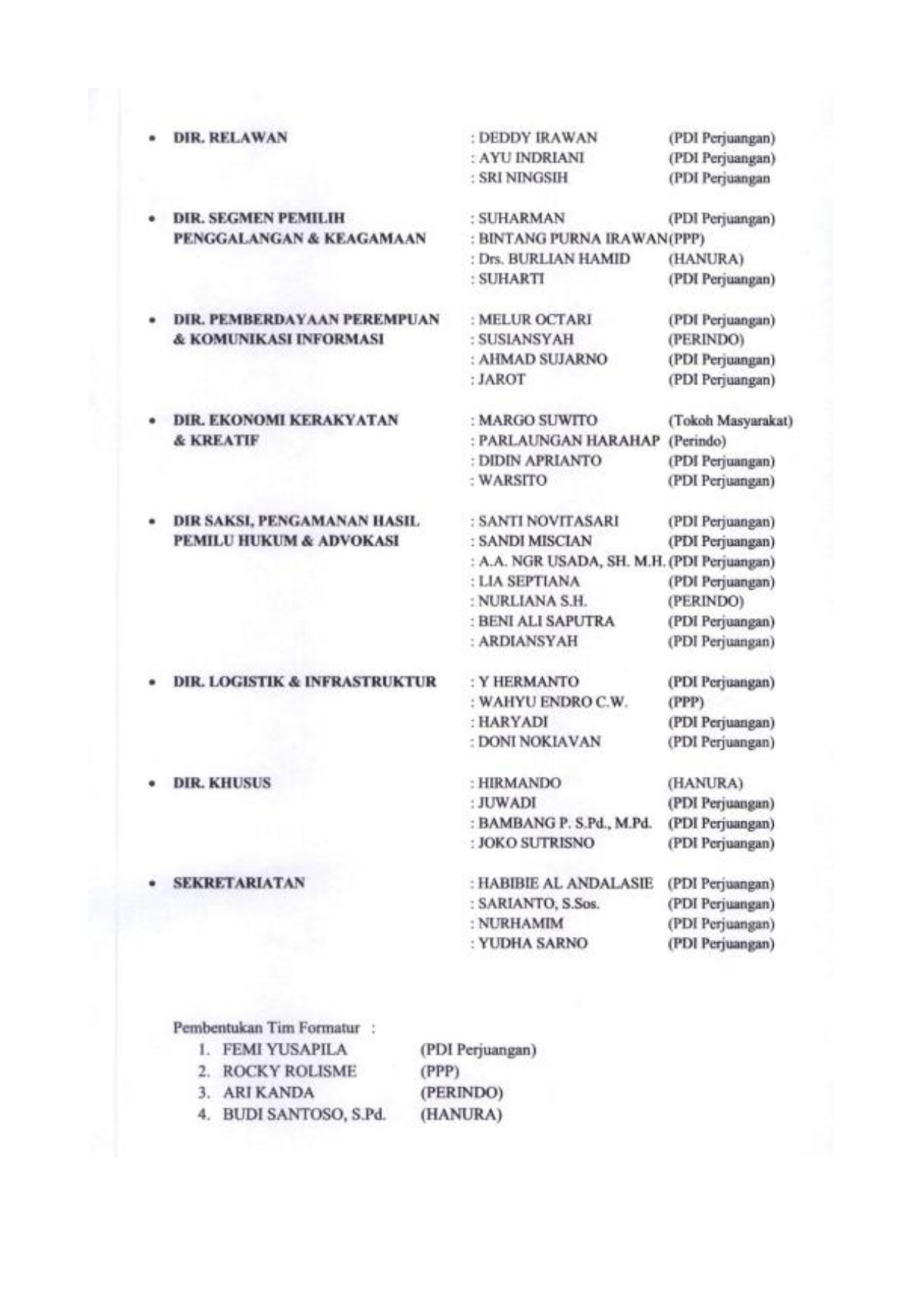 Berikut daftar nama Tim Kampanye Daerah dari 3 (tiga) pasangan calon Presiden dan Wakil Presiden.