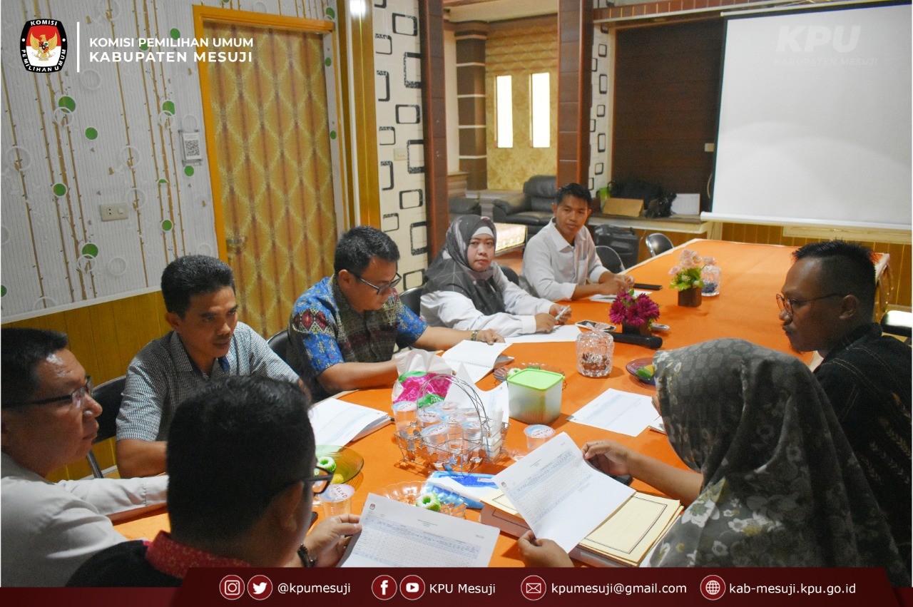 Rapat Pleno ini dihadiri oleh ketua dan semua anggota KPU Kabupaten Mesuji, Sekretaris KPU Kabupaten Mesuji serta Kasubbag dan staf Perencanaan Data dan Informasi KPU Kabupaten Mesuji.