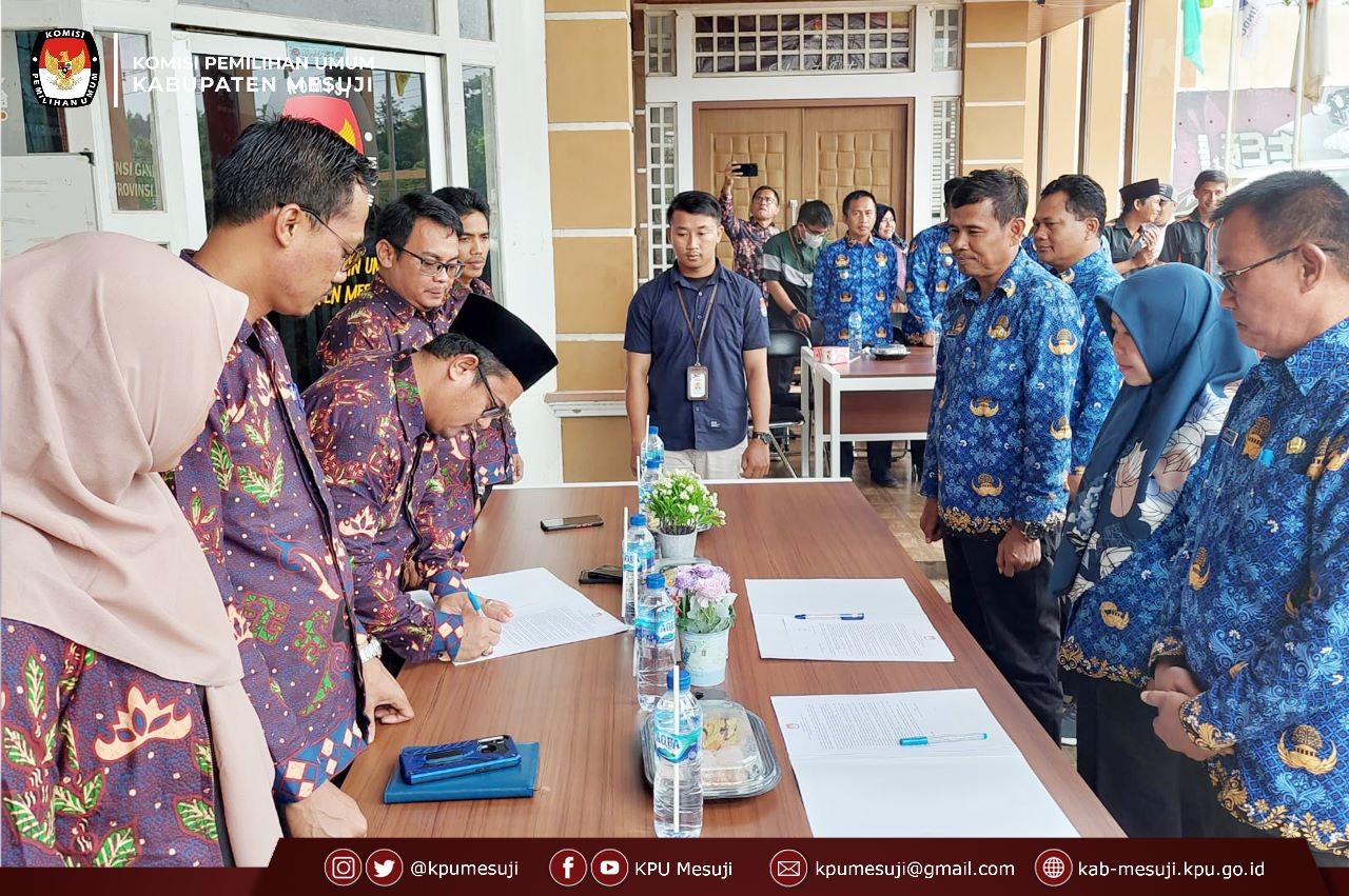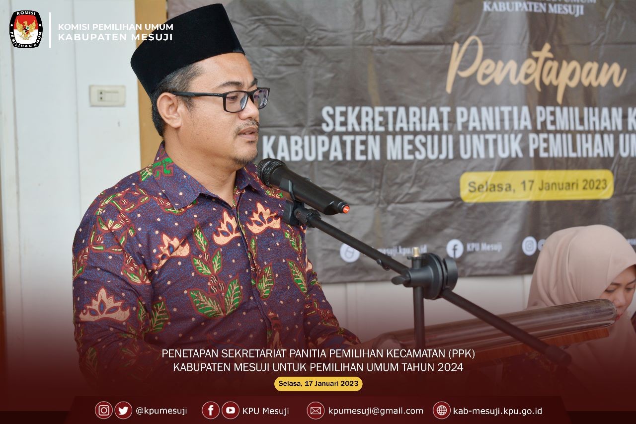 Komisi Pemilihan Umum (KPU) Kabupaten Mesuji melaksanakan kegiatan Penetapan Sekretariat Panitia Pemilihan Kecamatan (PPK) se-Kabupaten Mesuji untuk Pemilihan Umum tahun 2024 di kantor KPU Kabupaten Mesuji, Selasa (17/01/2023).