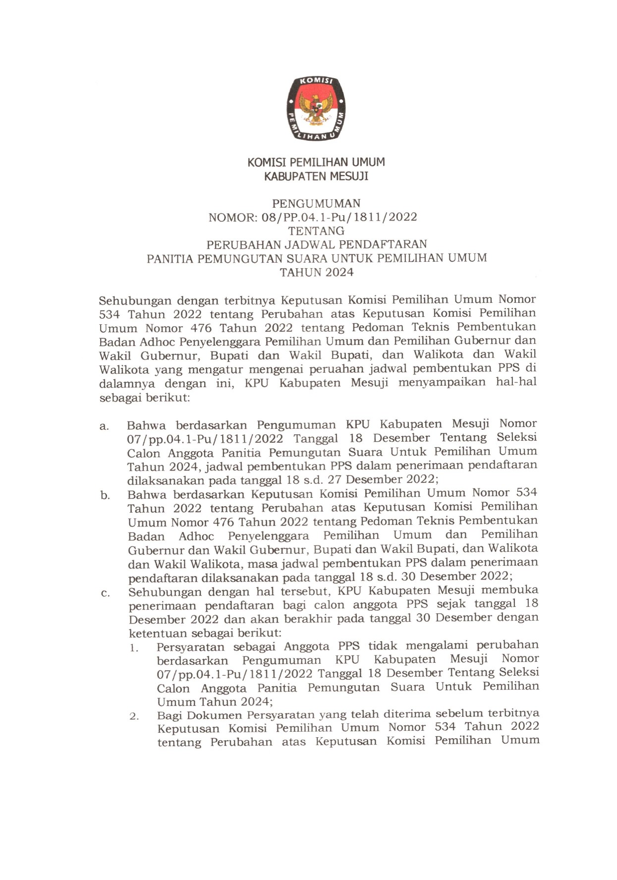 Pengumuman Perubahan Jadwal Penerimaan Pendaftaran PPS Jumat, 23 Desember 2022 00:00 345 Download Pengumuman Perubahan Jadwal Penerimaan Pendaftaran PPS di sini. Bagikan: Dilihat 345 Kali.
