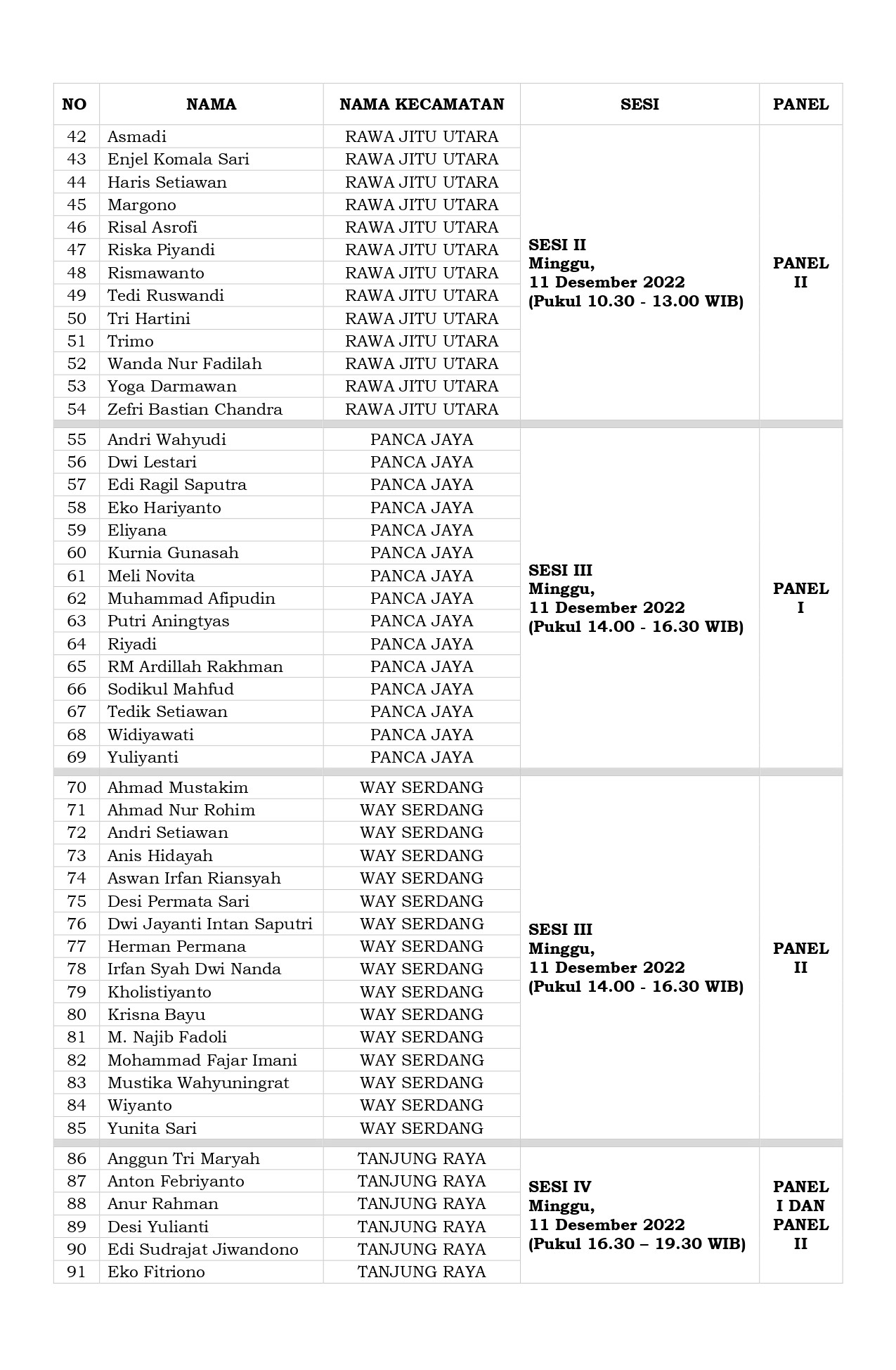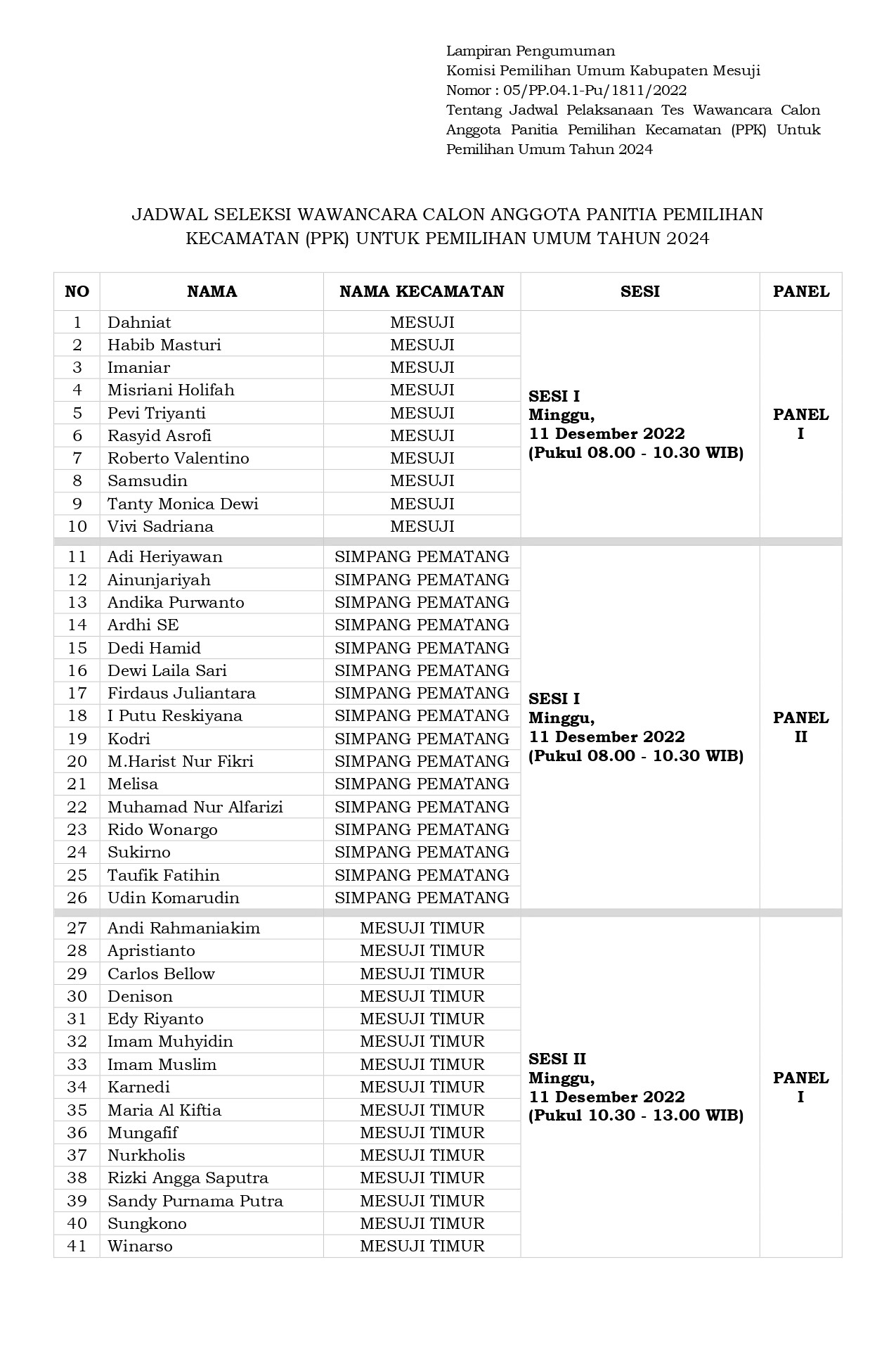 Pengumuman tentang Jadwal Pelaksanaan Tes Wawancara Calon Anggota PPK