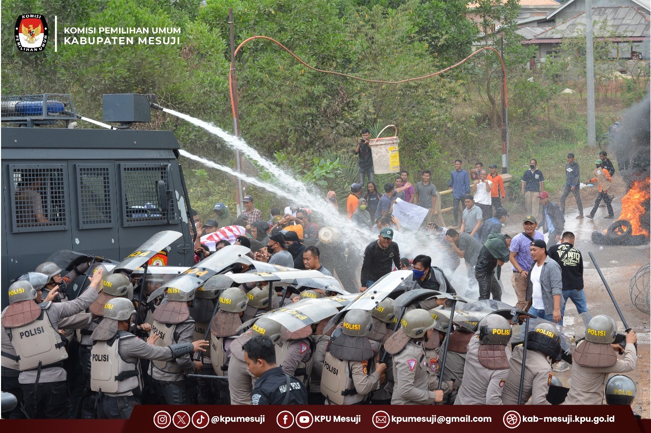Melalui pengeras suara pihak Kepolisian menghimbau massa untuk tidak melakukan perbuatan yang mengarah pada pelanggaran hukum. Namun massa semakin anarkis dan memaksa masuk ke kantor KPU. Pihak Kepolisian pun menurunkan mobil water cannon dan menyiagakan kendaraan Barracuda dan beberapa tembakan air mata terpaksa dilepaskan untuk melerai kericuhan.