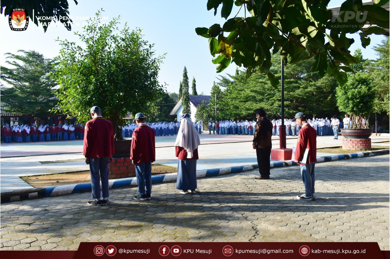 Komisi Pemilihan Umum (KPU) Kabupaten Mesuji melakukan Sosialisasi bertajuk “KPU Goes To School” di SMA Negeri 1 Tanjung Raya, Kabupaten Mesuji, Senin (08/08/2022).